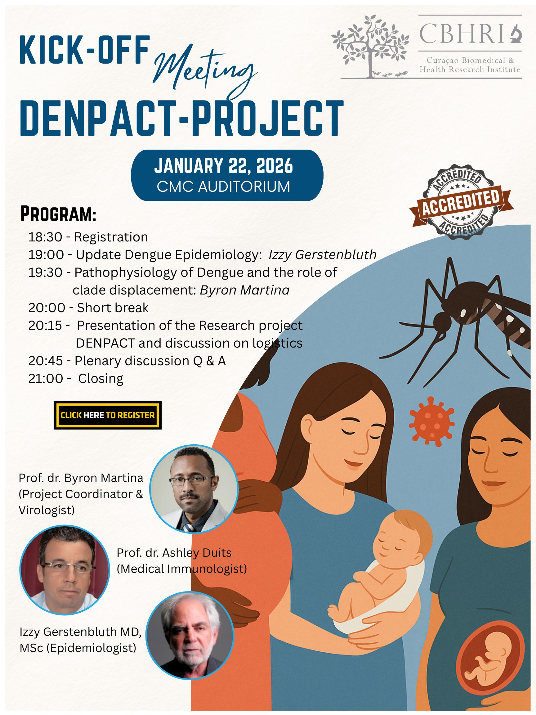 Daarnaast zal dr Byron Martina een wetenschappelijke lezing verzorgen getiteld: “Dengue pathogenesis and the importance of protecting Mothers and Babies from Dengue.” In deze presentatie worden inzichten gedeeld over de pathogenese van dengue en de de implicaties van een dengue infectie voor moeders en hun ongeboren kind.