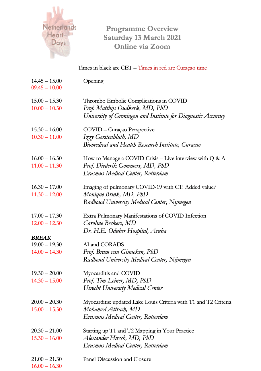 We are happy to announce an outstanding COVID related NHD program with excellent speakers, both from the Netherlands as well as the Caribbean with ample room for discussion.